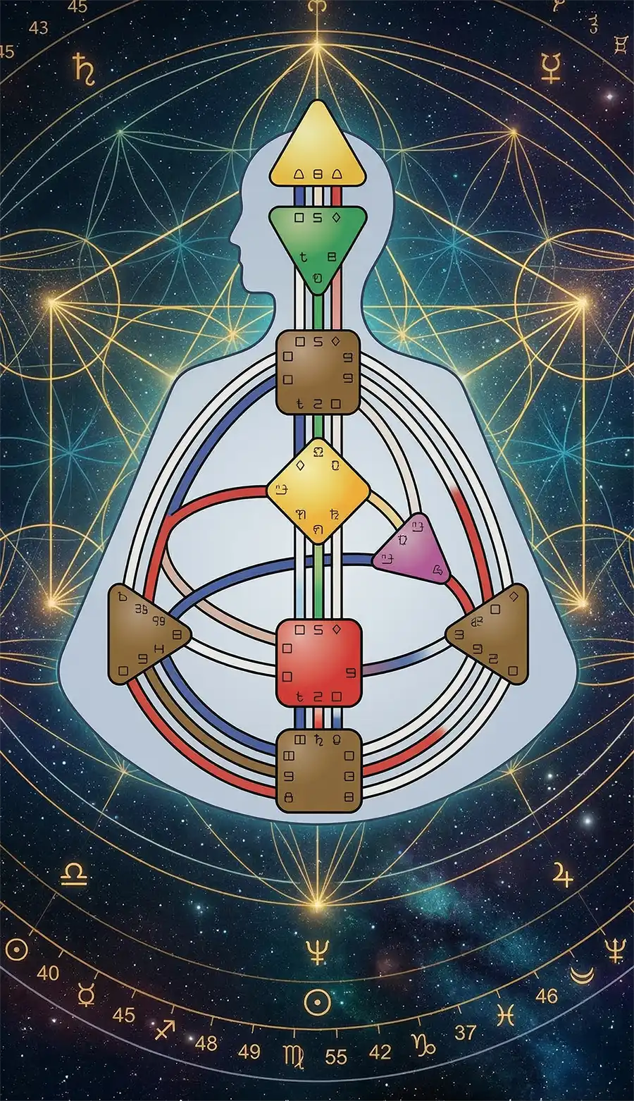 It maps your energetic blueprint using a synthesis of ancient systems (I Ching, astrology, Kabbalah, chakras) and modern science (quantum physics, gene keys.). The result is a bodygraph, a visual representation of your energy centers, channels, and gates.